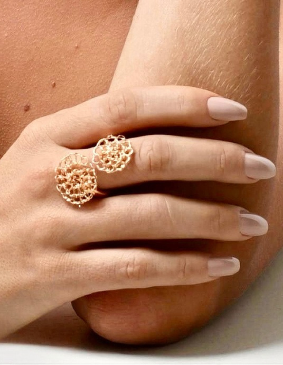 Anel Duplo Círculo Crochê Banho Ouro 18K