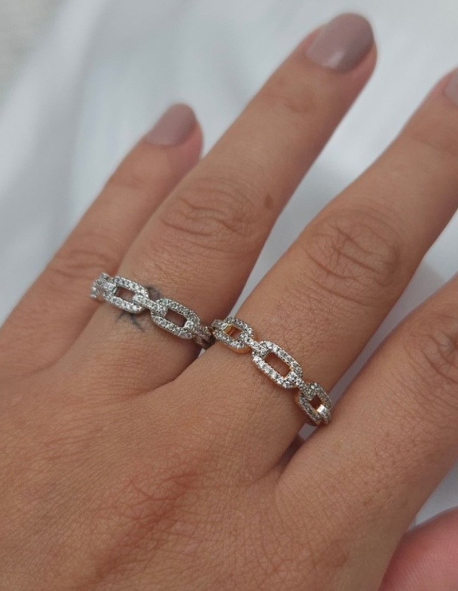 Anel Elos Cravejados Prata 925 Banho Ródio e Zircônias quantidade