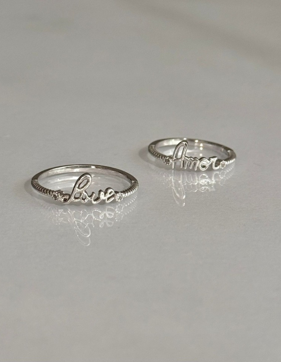 Anel Love / Amor Prata 925 Banho Ródio e Zircônias