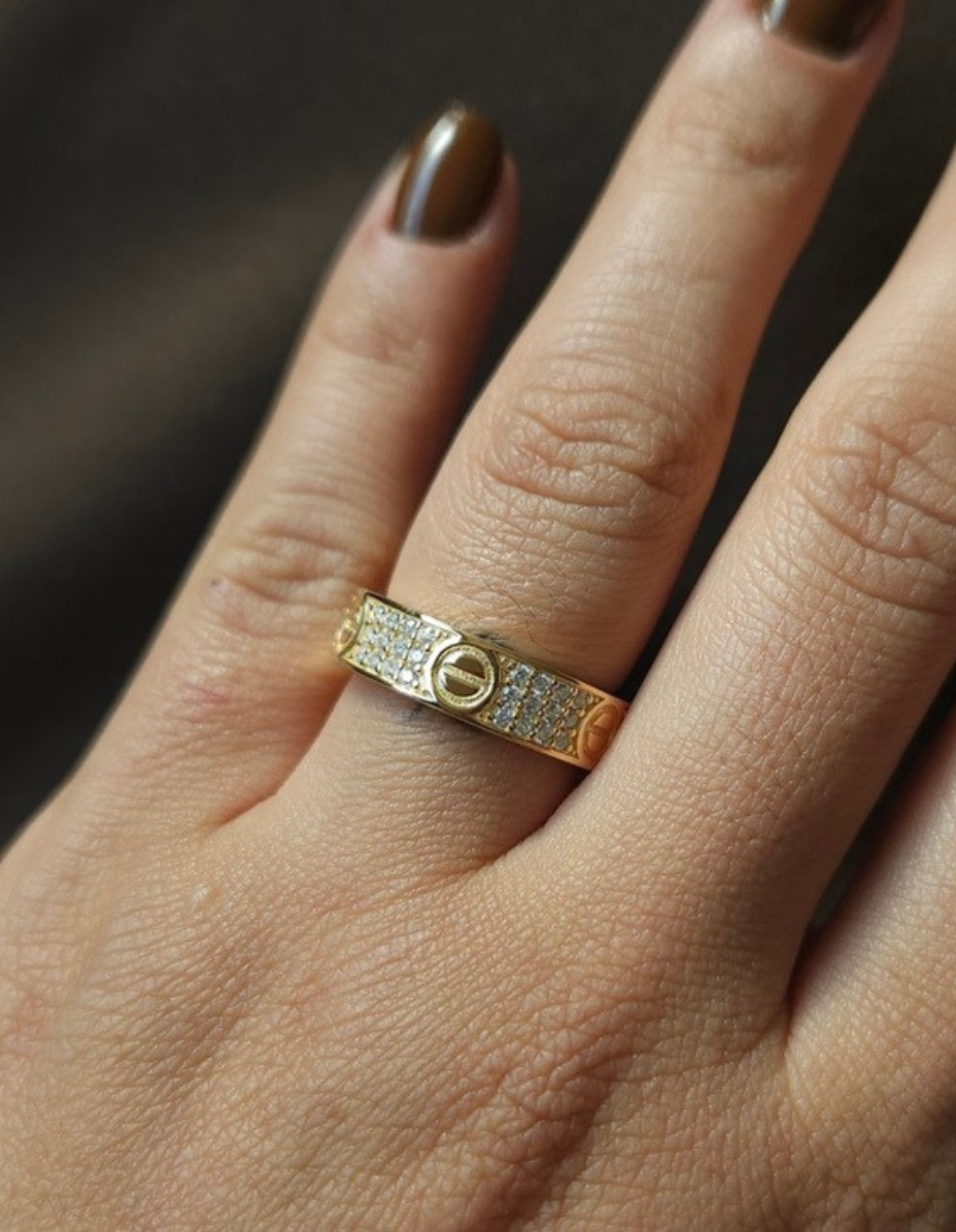 Anel Prego Cravejada C Prata 925 Banho Ródio e Zircônias