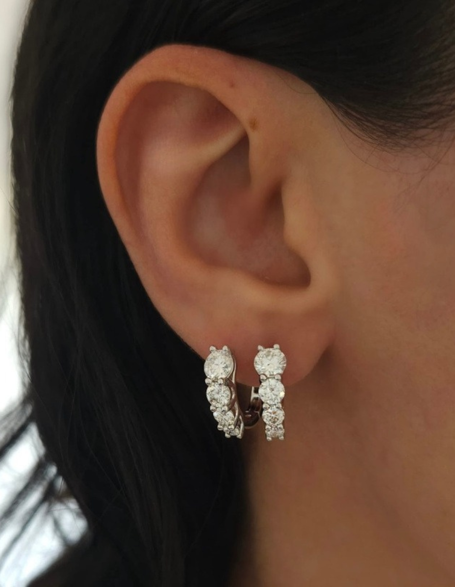 Brinco Argola Prata 925 Banho Ródio e Moissanite