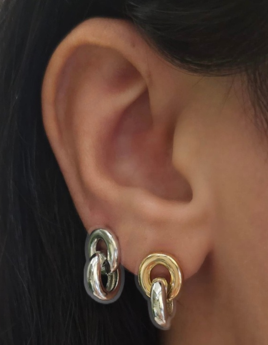Brinco Argolas Prata 925 Banho Ródio e Ouro 18K