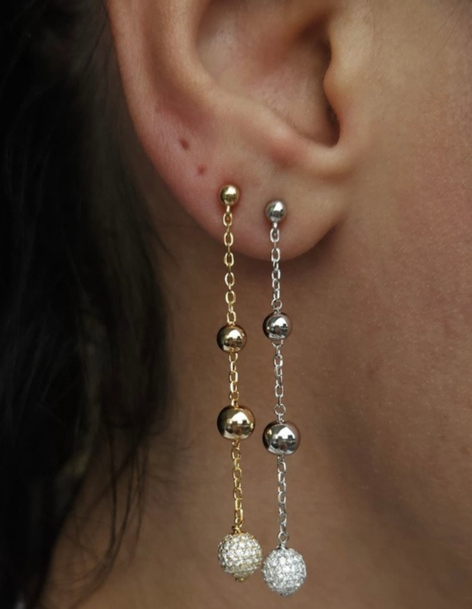 Brinco Bolas Lisas/Cravejadas Prata 925 Banho Ouro 18k / Ródio e Zircônias quantidade