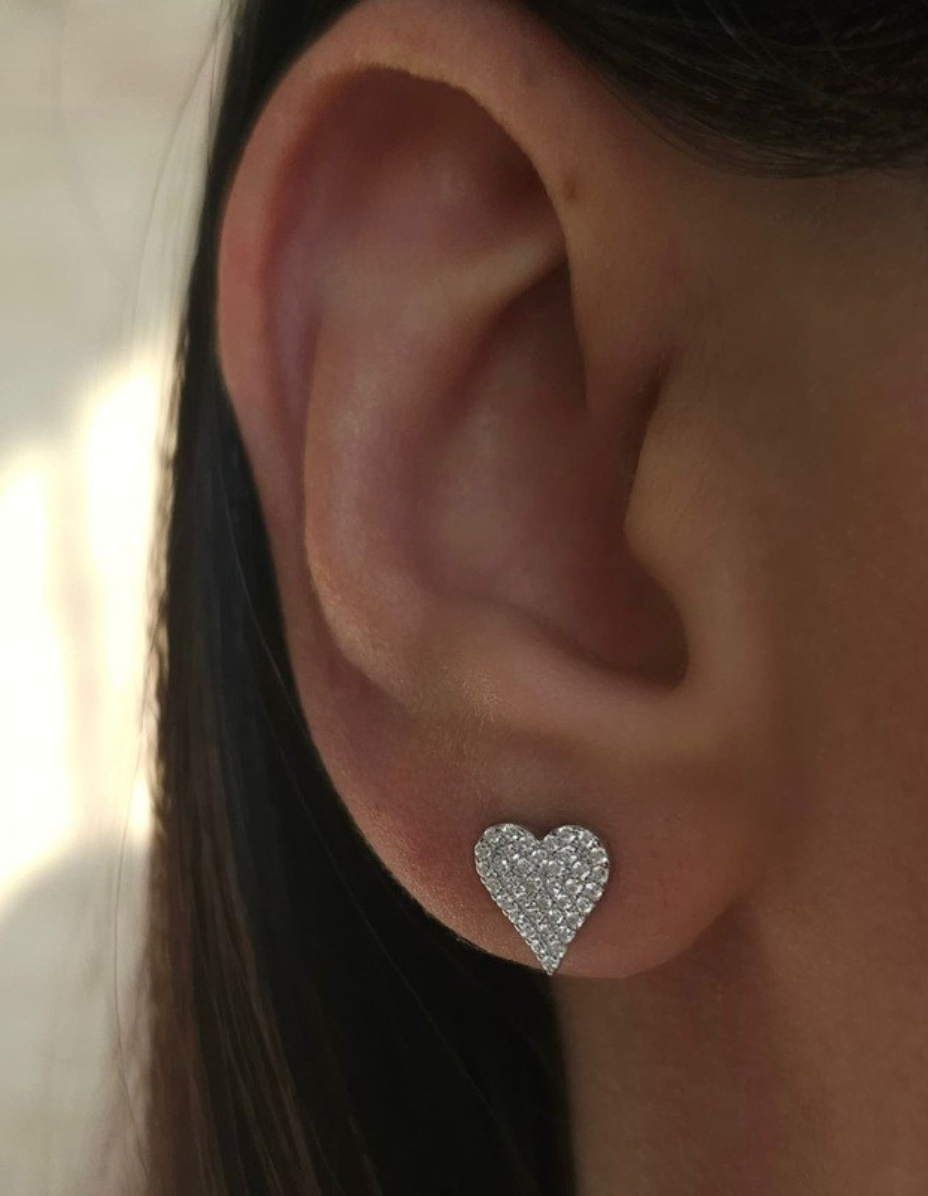 Brinco Coração P Prata 925 Banho Ródio e Zircônias