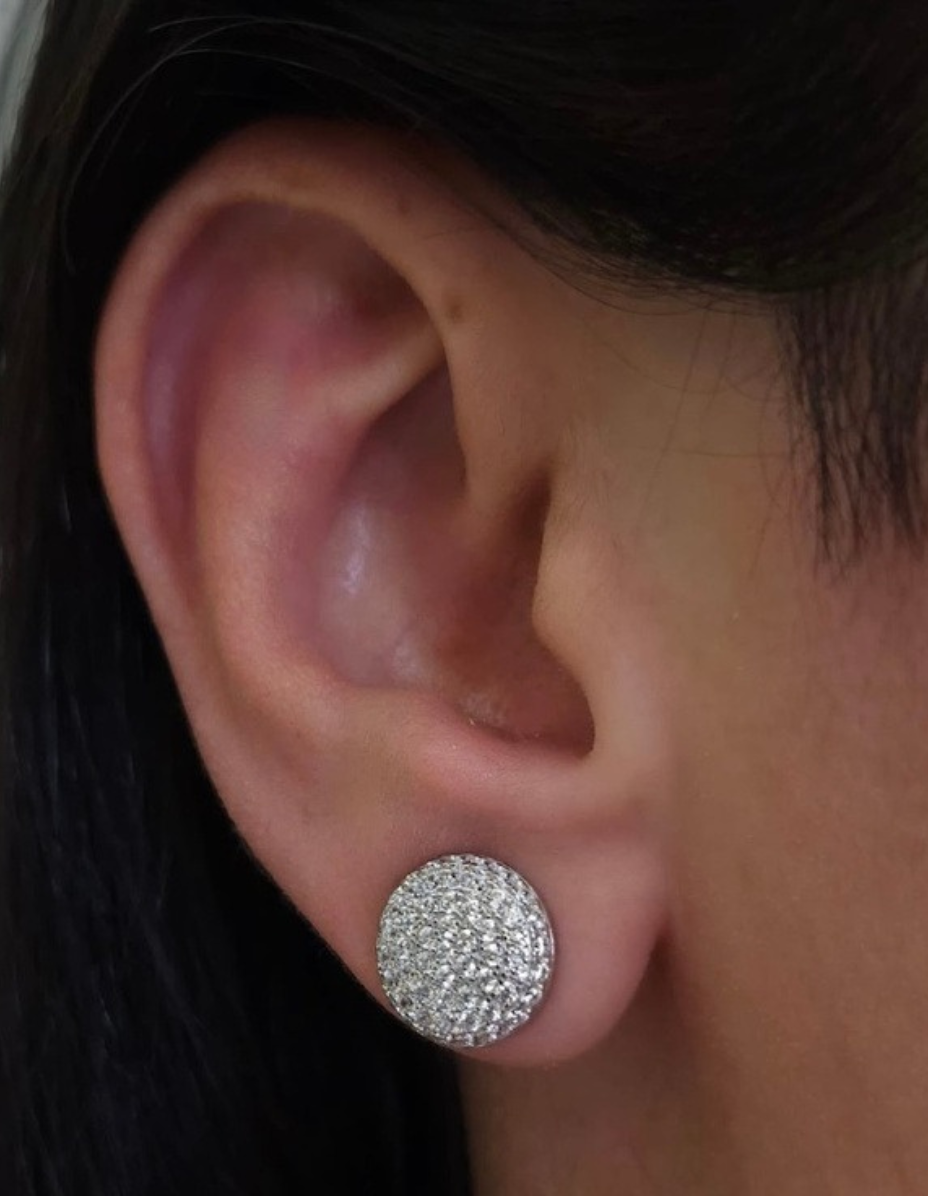 Brinco Cravejado Relevo Prata 925 Banho Ródio e Zircônias