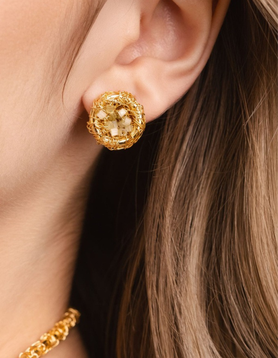 Brinco Cristais Verdes Banho Ouro 18K