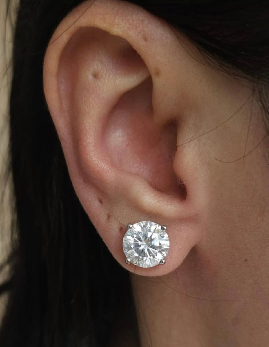 Brinco Ponto de Luz 10mm Prata 925 Banho Ródio e Moissanite