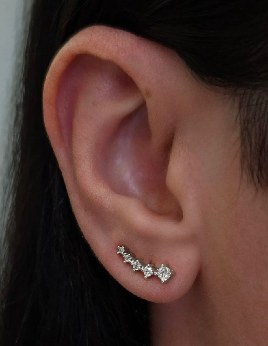 Brinco Pontos Prata 925 Banho Ródio e Zircônias