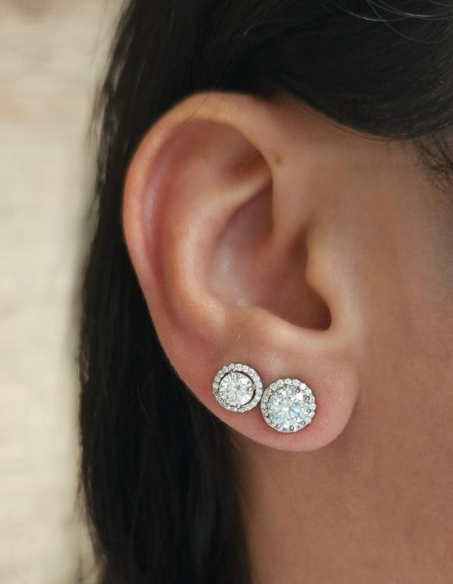 Brinco Redondo Bordas Cravejadas M/G Prata 925 Banho Ródio e Moissanite quantidade