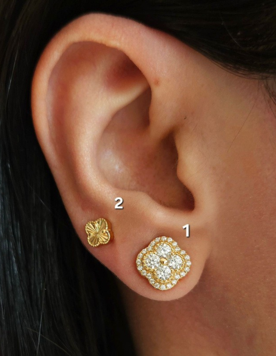 Brinco Trevos P (2) / G (1) Prata 925 Banho Ouro 18k quantidade