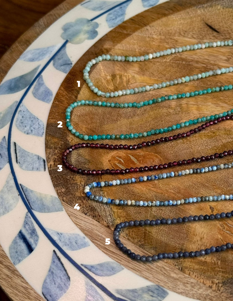 Colar Esmeralda / Amazonita / Granada / Lápis Lazuli / Safira Banho Ouro 18k quantidade