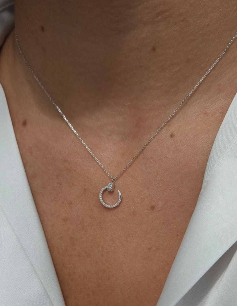 Colar Meia Lua Prata 925 Banho Ródio e Zircônia quantidade