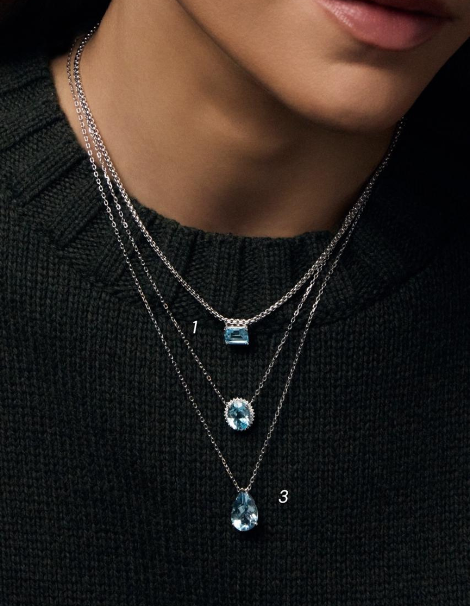 Colar Pedra Natural Retangular (1) / Gota (3) Prata 925 Banho Ródio quantidade