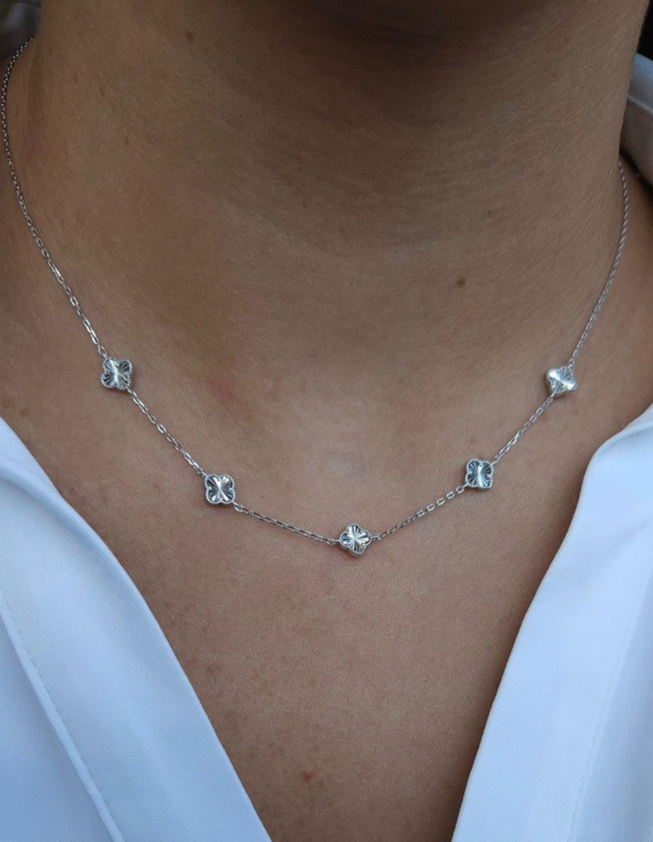 Colar Trevos P Prata 925 Banho Ródio