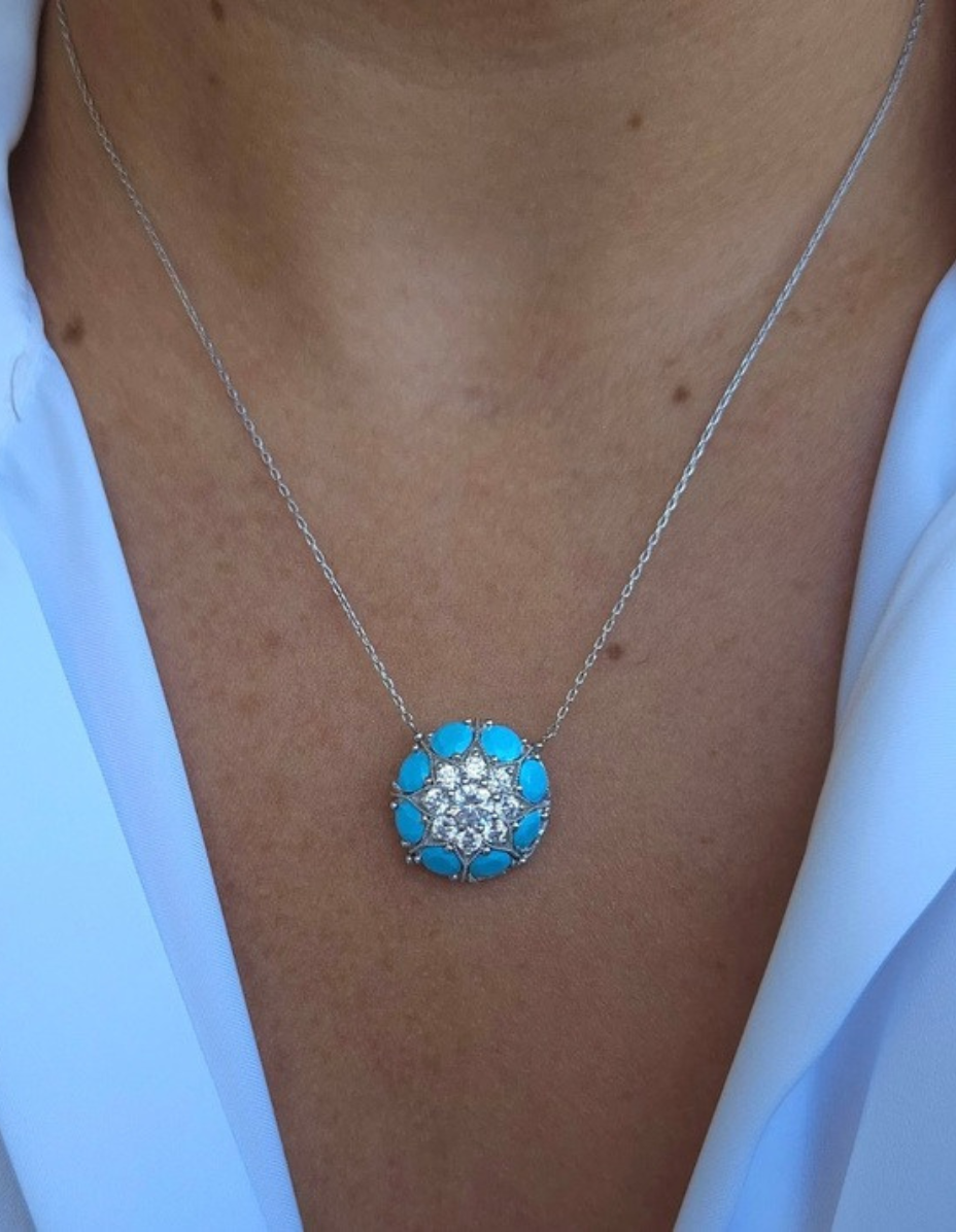 Colar Turquesa Prata 925 Banho Ródio e Zircônias