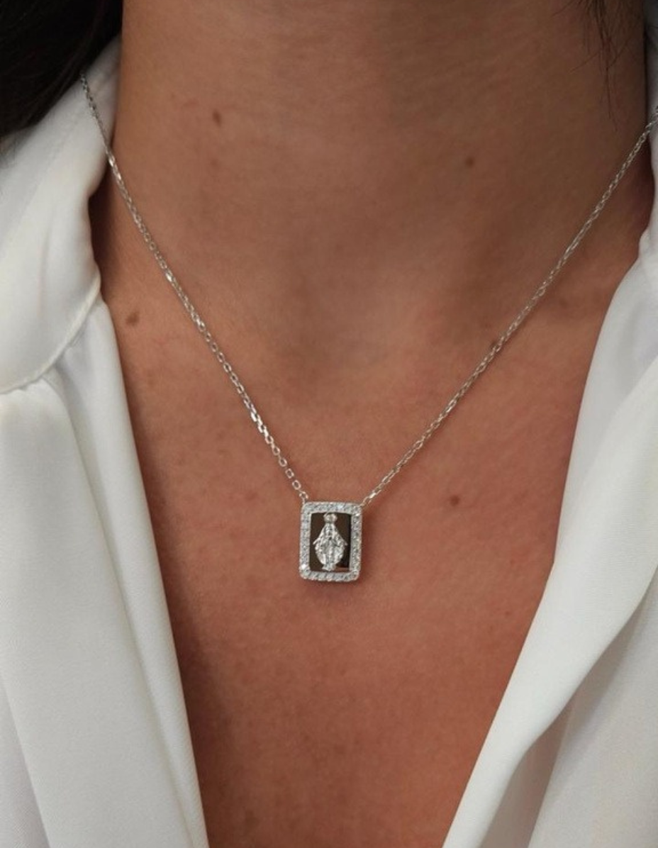 Escapulário Nossa Senhora Retangular Prata 925 Banho Ródio e Moissanite quantidade