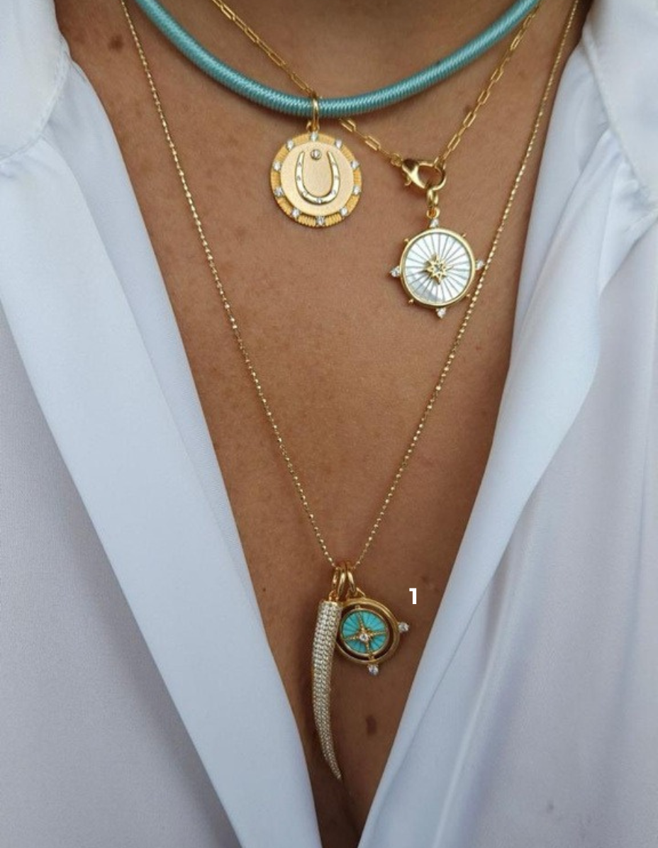 Pingente Bússola Turquesa Prata 925 Banho Ouro 18k e Zircônias quantidade