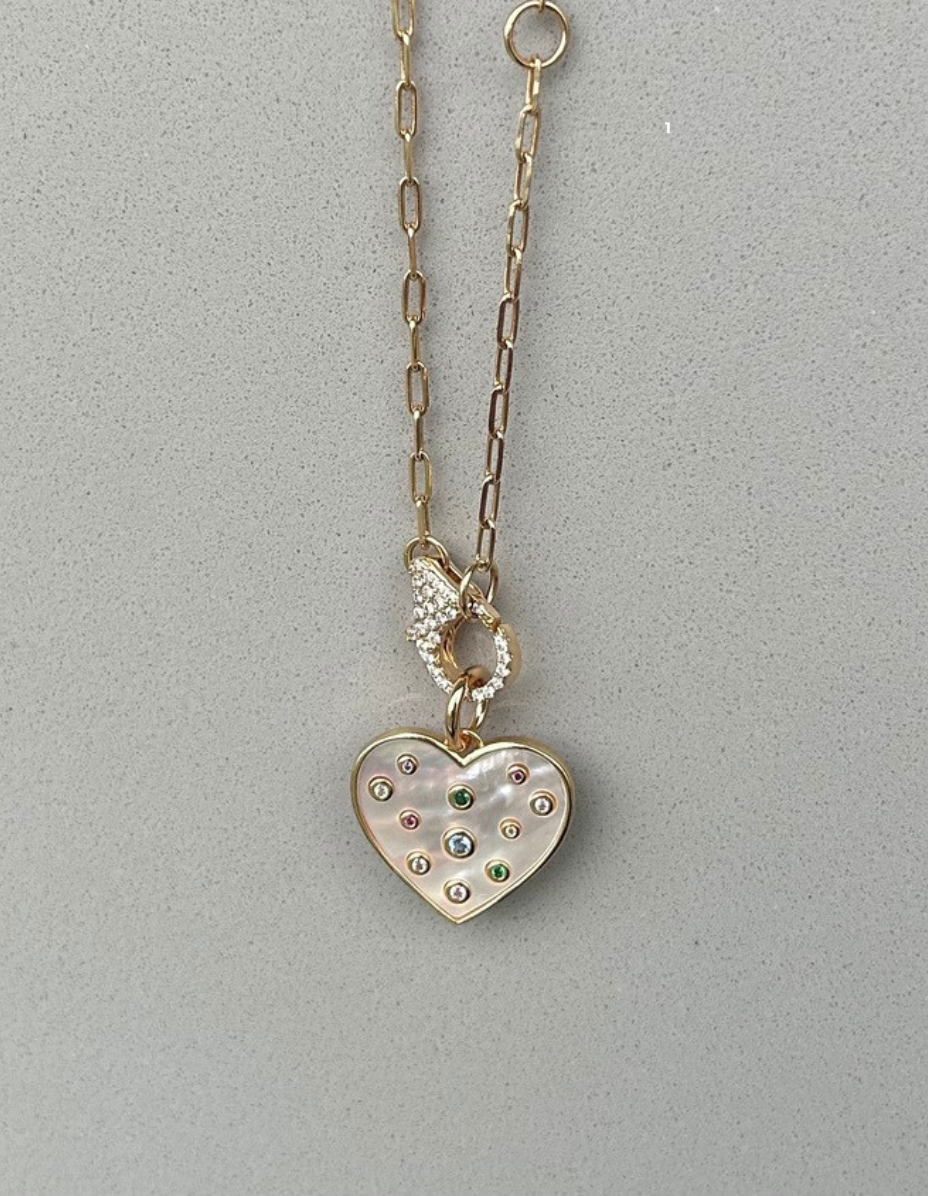 Pingente Coração Pedras Coloridas Prata 925 Banho Ouro 18k – Corrente Elos c/ Fecho Cravejado Prata 925 Banho Ouro 18k e Zircônias