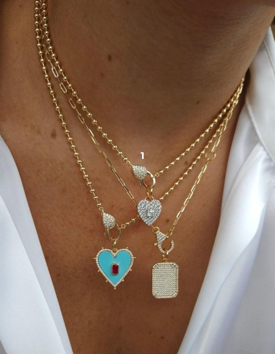 Pingente Coração Turquesa/Rubi Prata 925 Banho Ouro 18k e Zircônias – Corrente Bolinhas c/ Fecho Cravejado Prata 925 Banho Ouro 18k e Zircônias (1)
