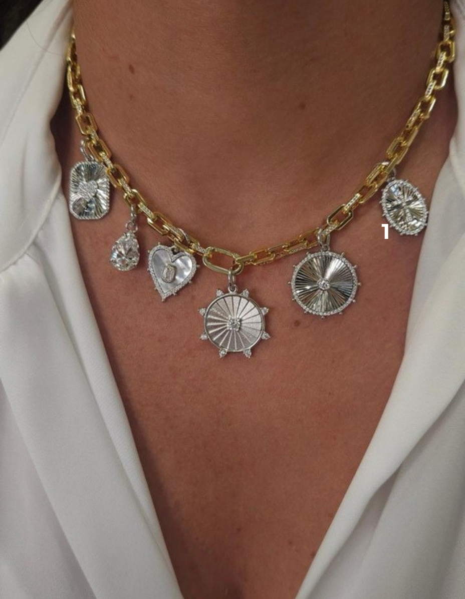 Pingente Raio Sol Octógono Madrepérola Prata 925 Banho Ouro 18k e Moissanite (1)