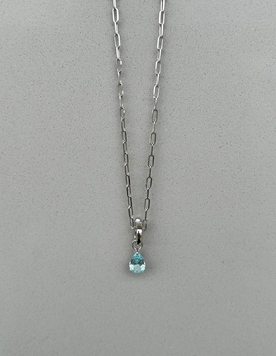 Pingente Gota Aqua Prata 925 Banho Ródio – Corrente Elos Lisa Prata 925 Banho Ródio