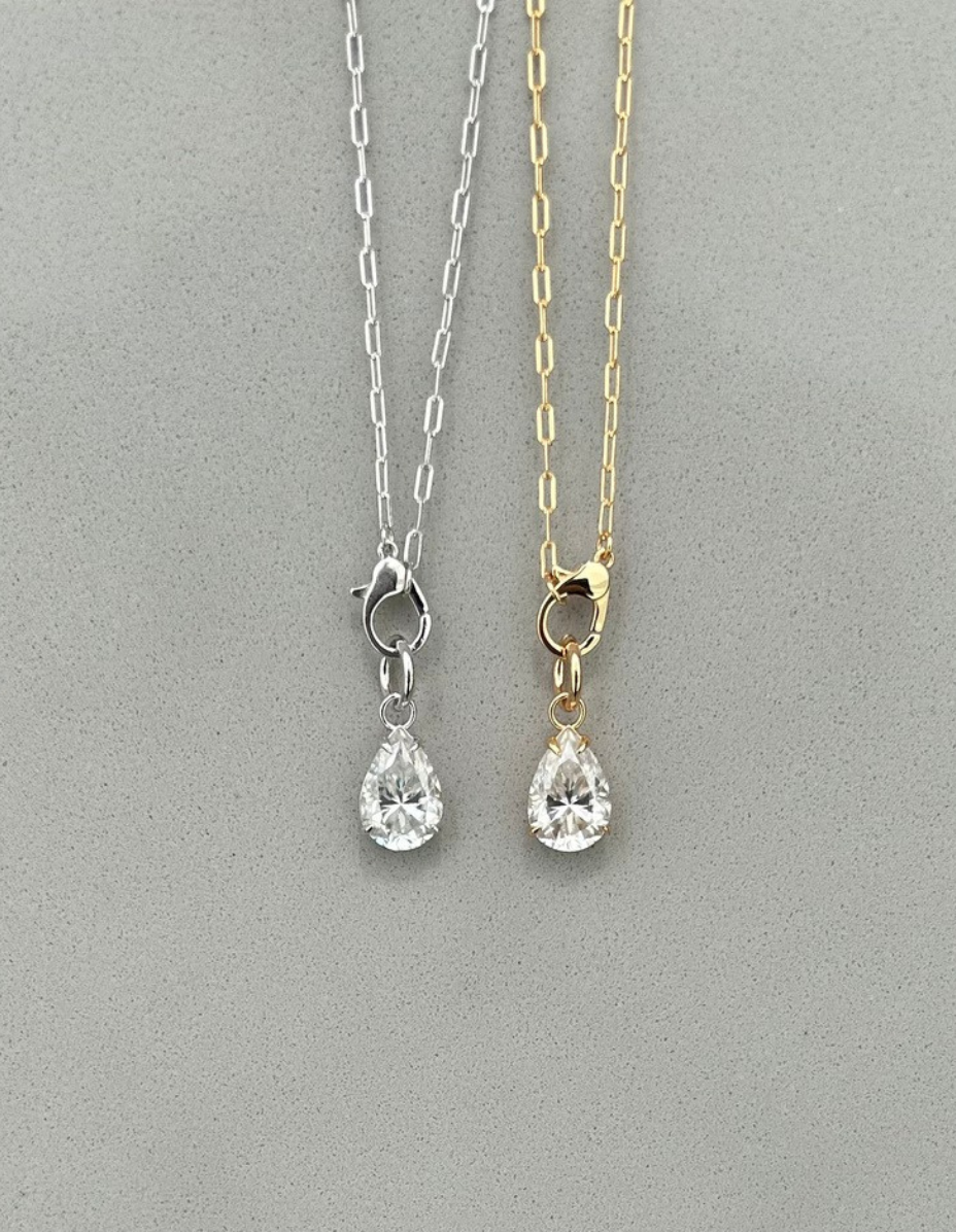 Pingente Gota Prata 925 Banho Ouro 18k e Moissanite