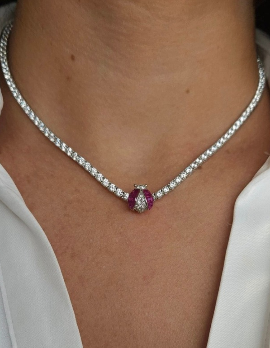 Pingente Joaninha Prata 925 Banho Ródio e Zircônias quantidade
