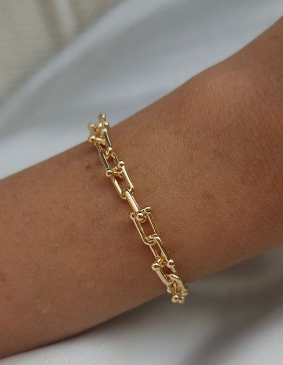 Pulseira Elos T Prata 925 Banho Ouro 18k